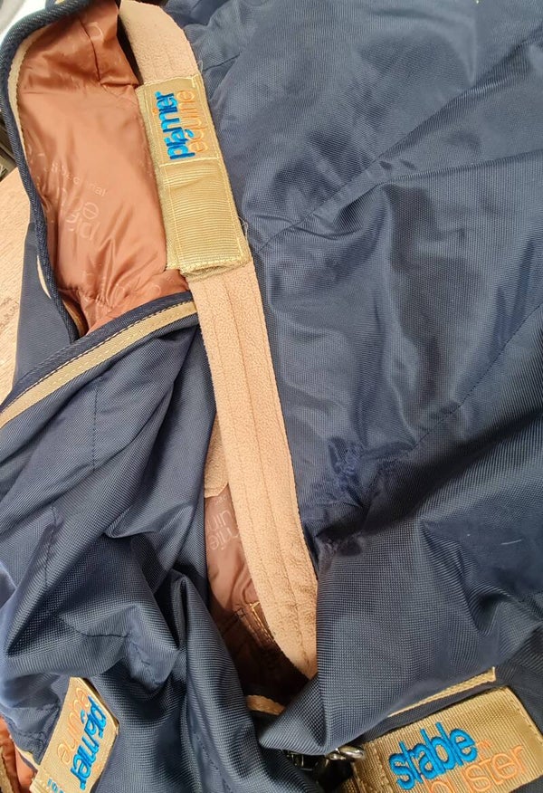 Premier equine 100g detachable neck stable rug. Liner compatible. Small nic on bottom corner (see photos), plenty of wear left in this rug. No fillet string.