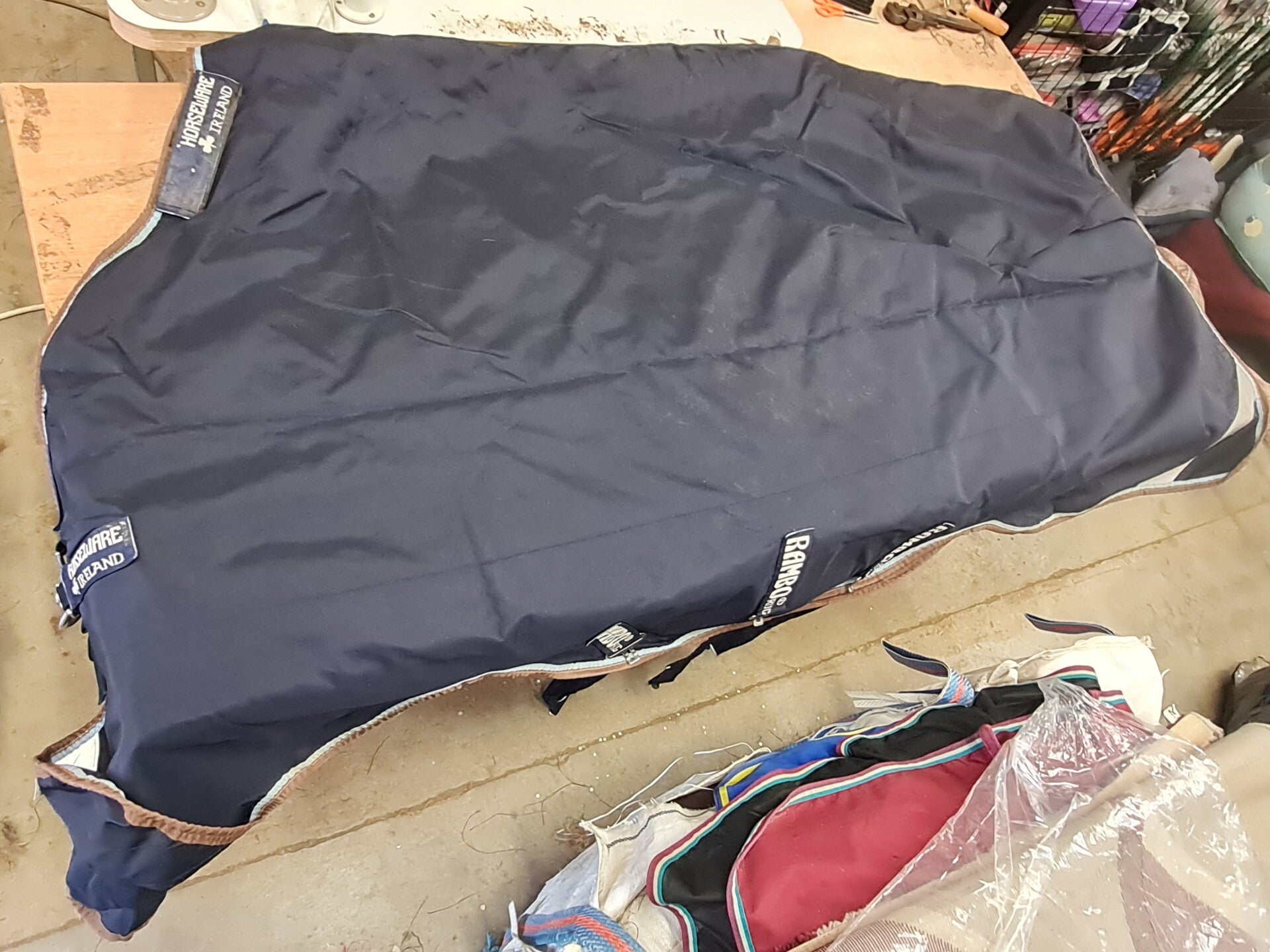 Horseware Rambo 100g turnout rug. Neck cover and liner compatible, metal work tarnished, has marks, plenty of wear left in this rug.