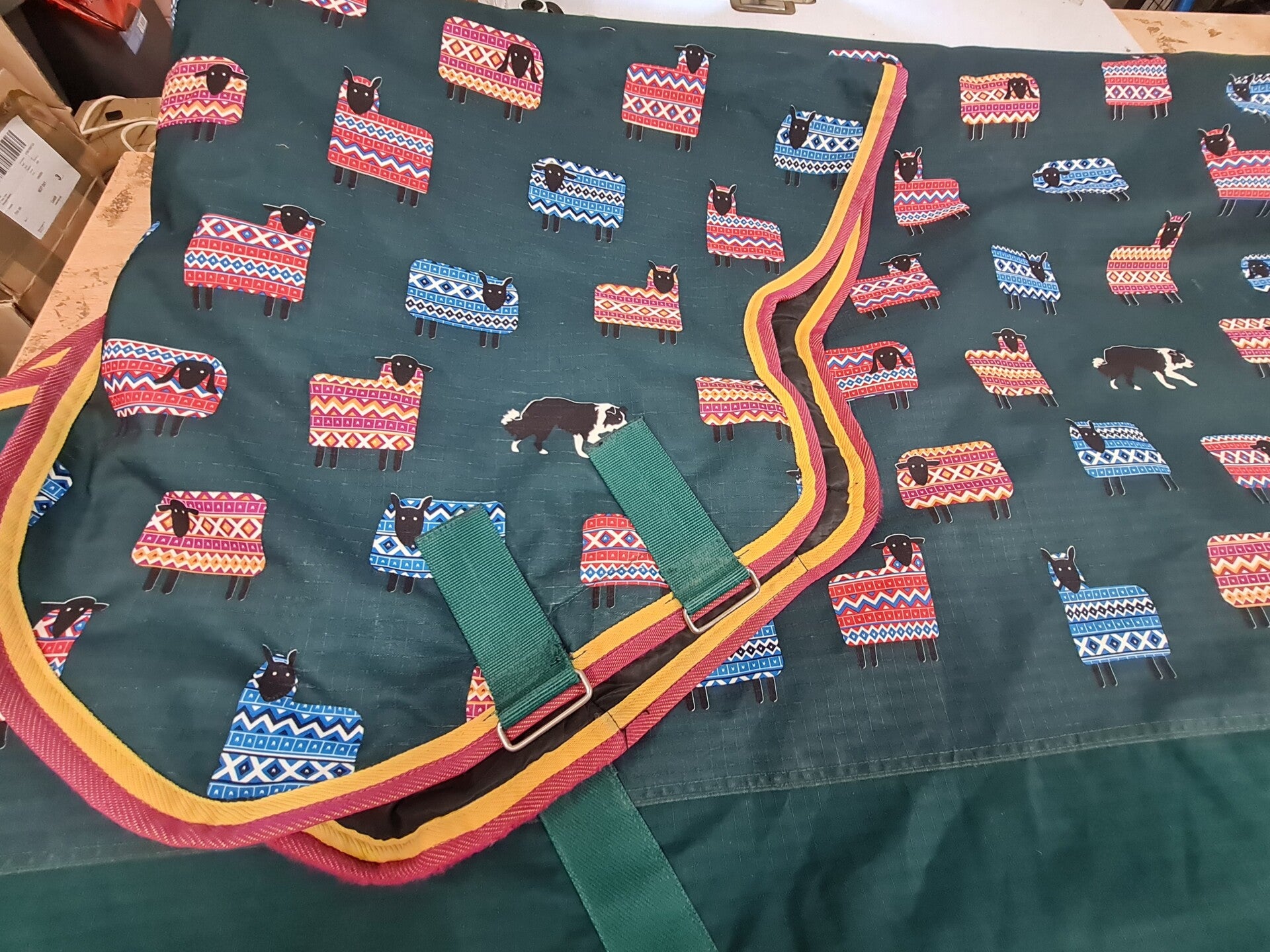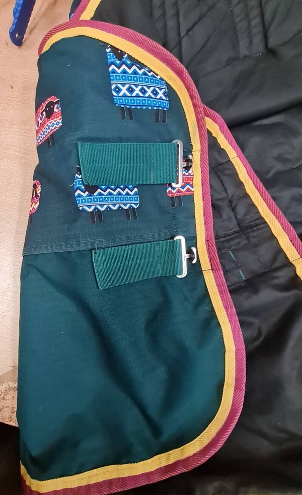 Shires tempest sheep pattern Combo turnout rug, great condition, has a repair to binding and a mark on Rug (see photos).