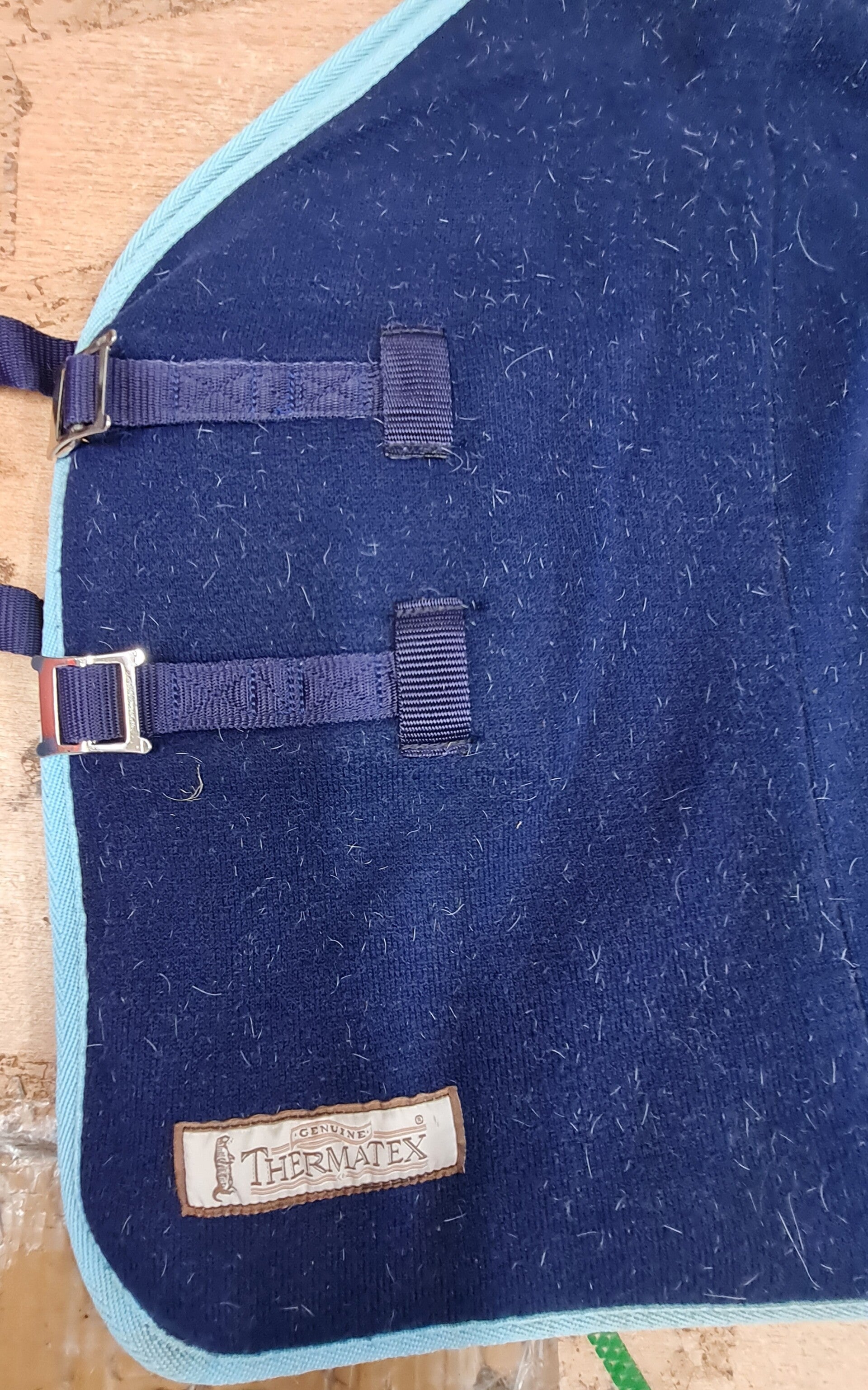 Thermatex lightweight rug, has got a pull/snag at the front (see pictures), Has had a repair, does have stubborn grey hairs. Plenty of wear left in this rug.