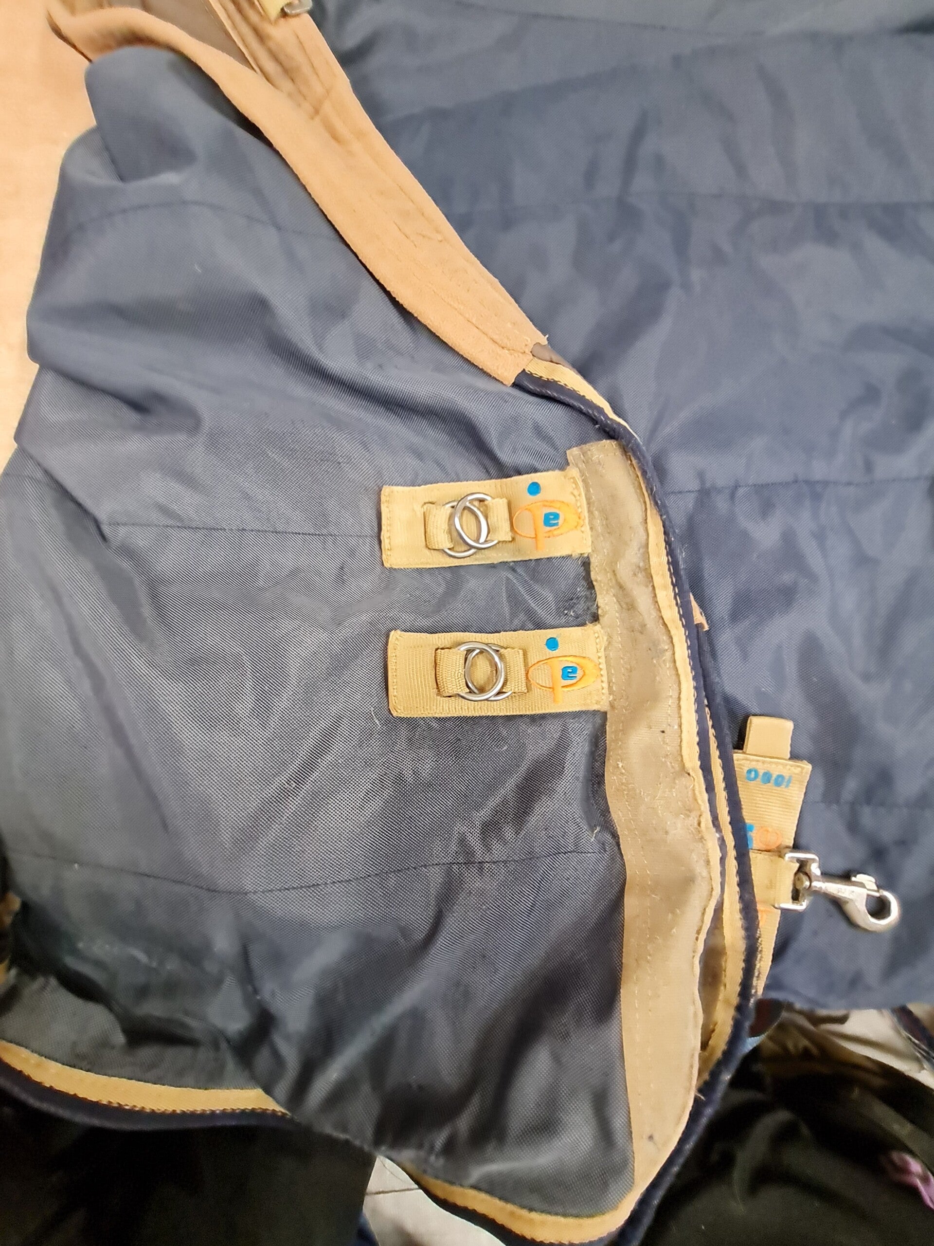 Premier Equine older style 100g detachable neck stable rug. Has had repairs, has stains, liner compatible, plenty of wear left in this rug.