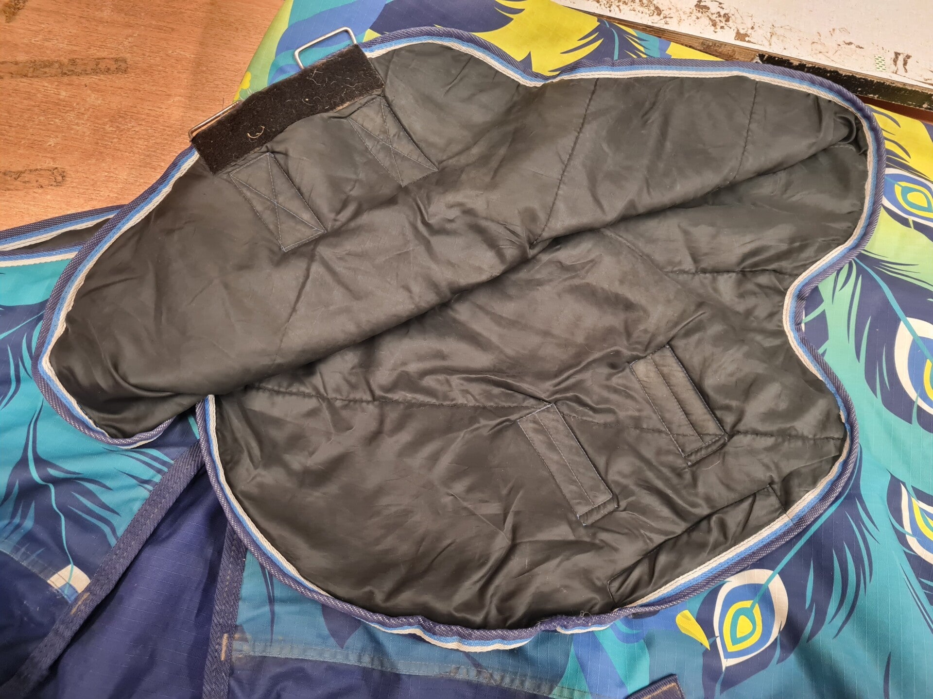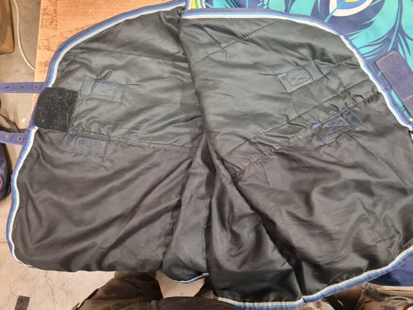 Shires highlander 200g combo turnout rug, metal work tarnished. Plenty of wear left in this rug.