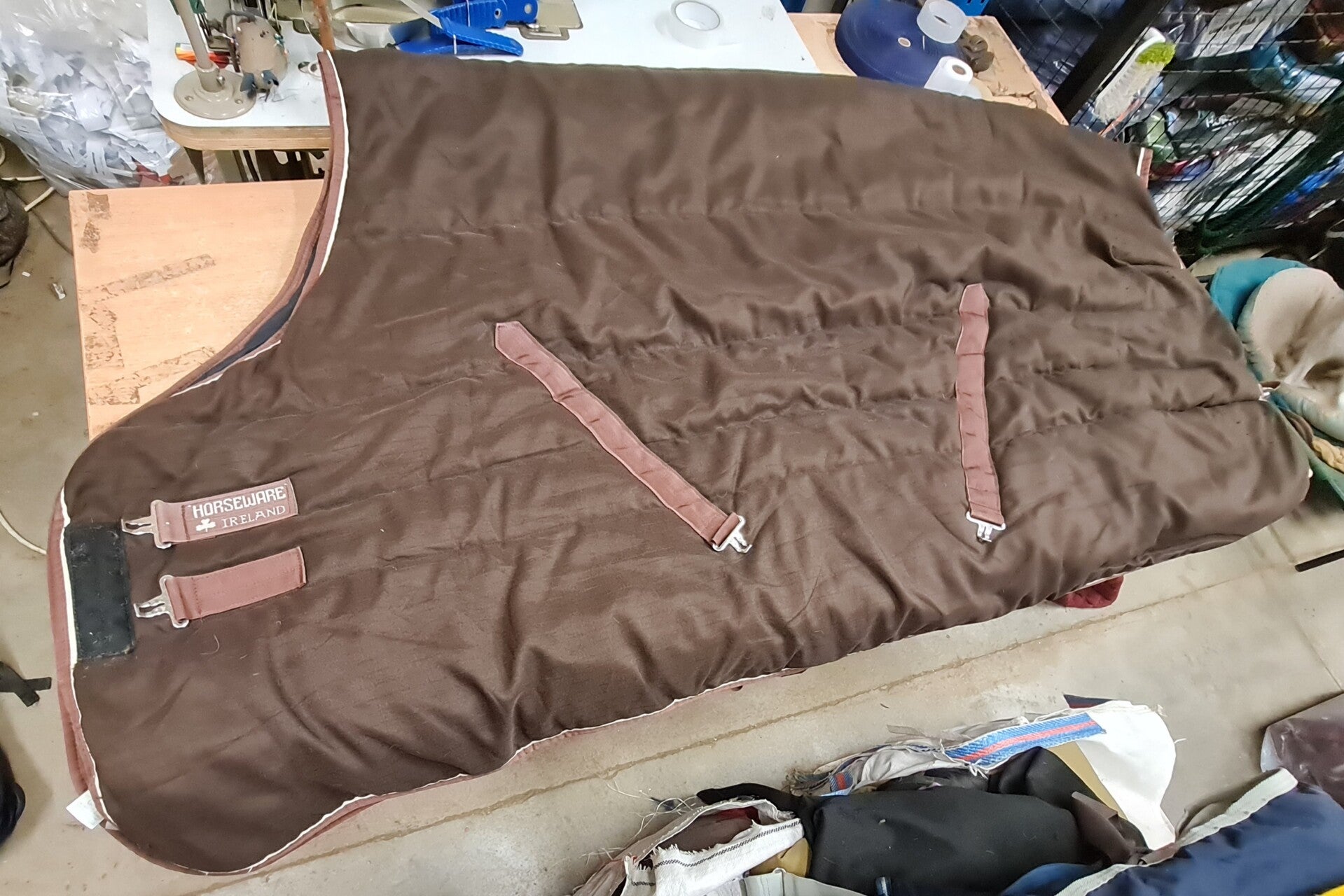 Brown Horseware Rambo 400g Stable Rug. Has a small repair to lining, has some pulls on the back of rug - see photos, lovely and soft inside. Plenty of wear left in this rug.