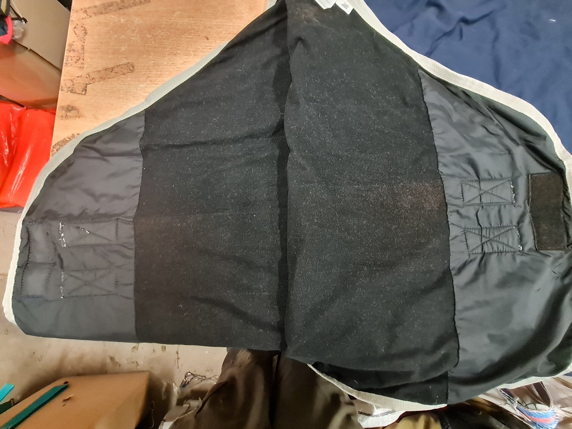 Armadillo magnetic rug measures a small 6'6. Has been used, is faded in places, metalwork tarnished.