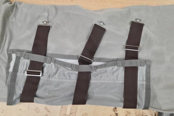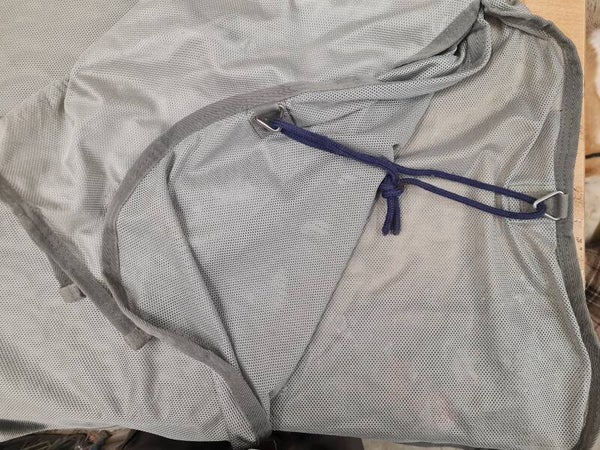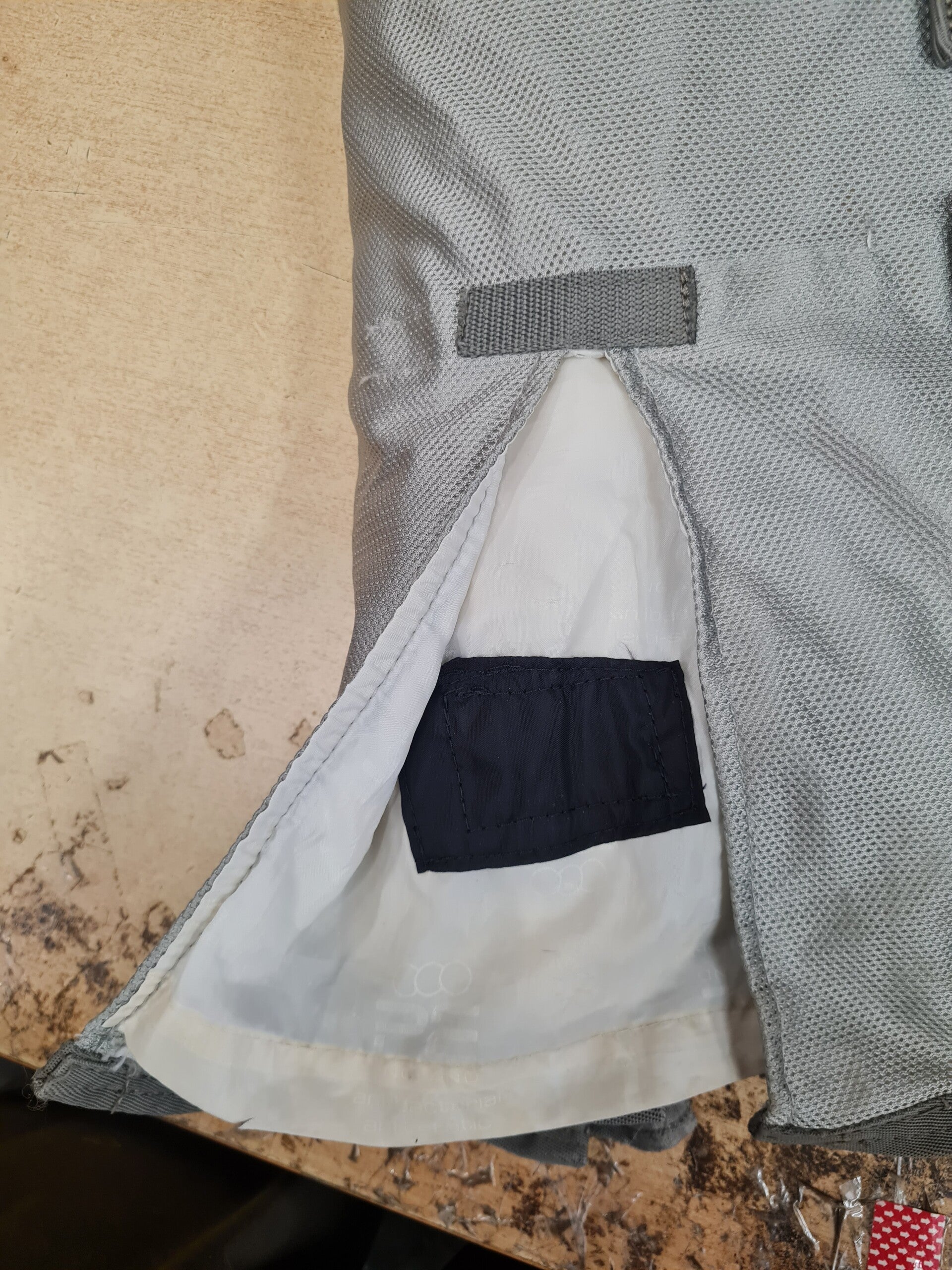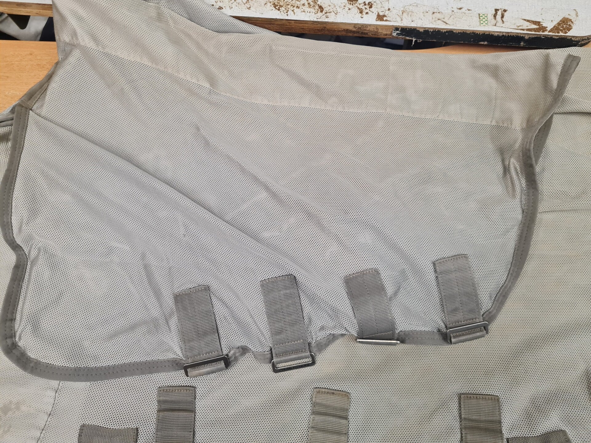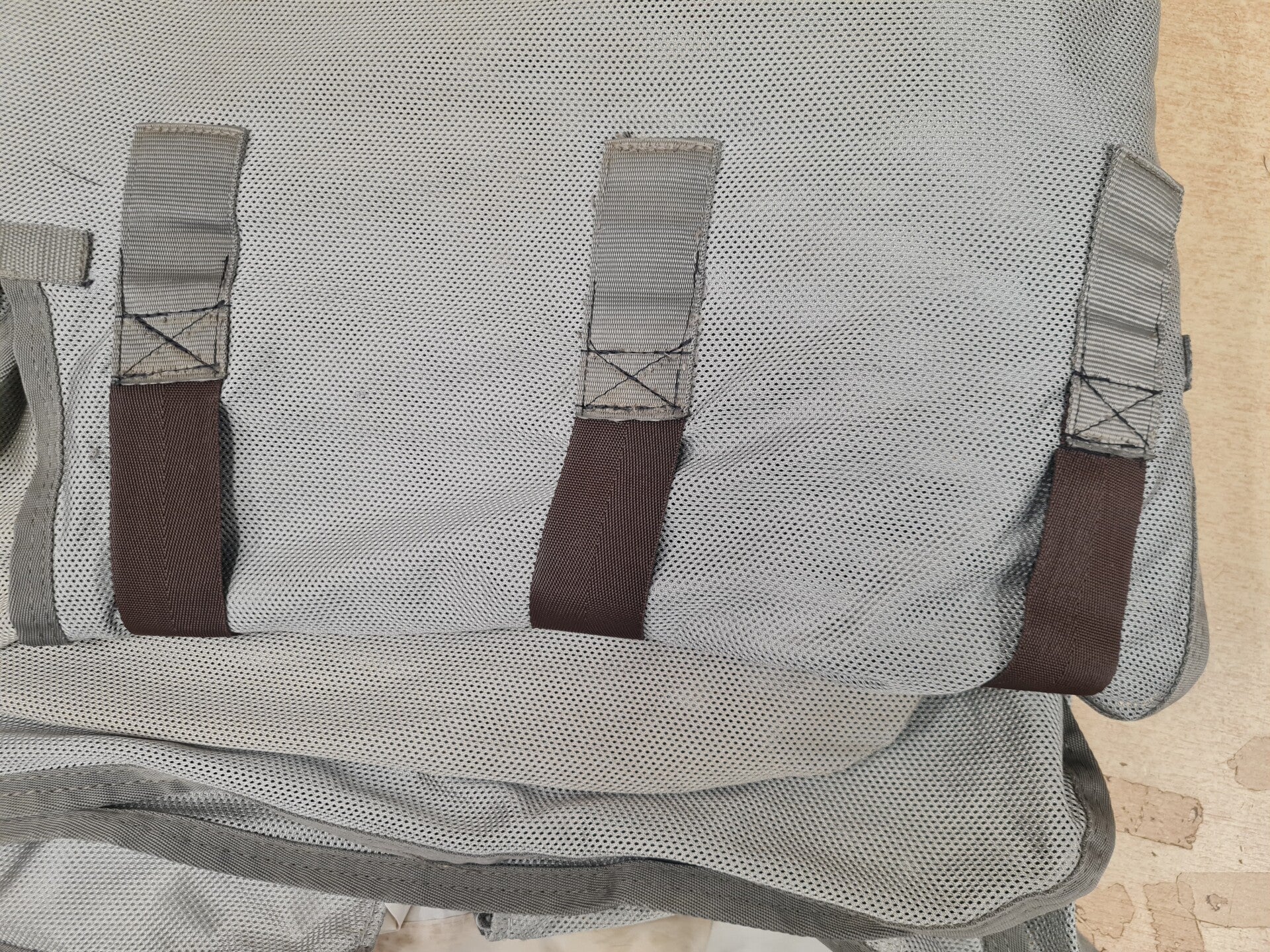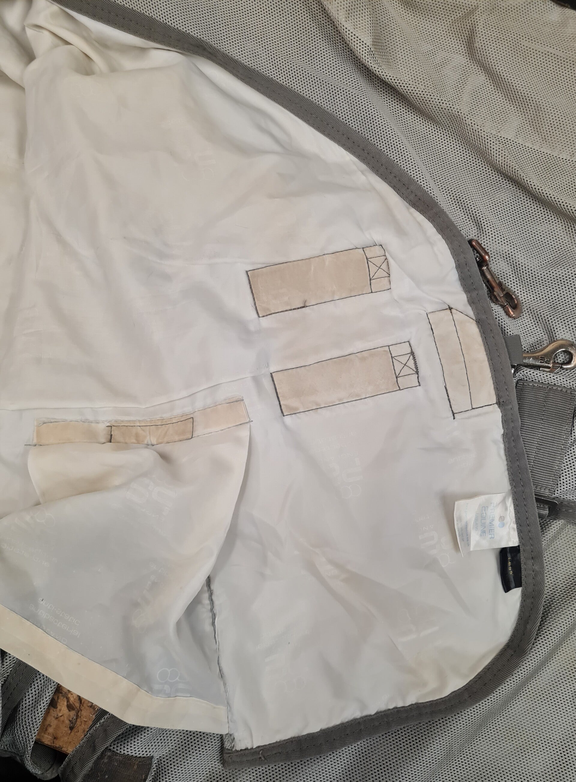 Has had some repairs, has marks, surcingles have been replaced. Not original fillet string.